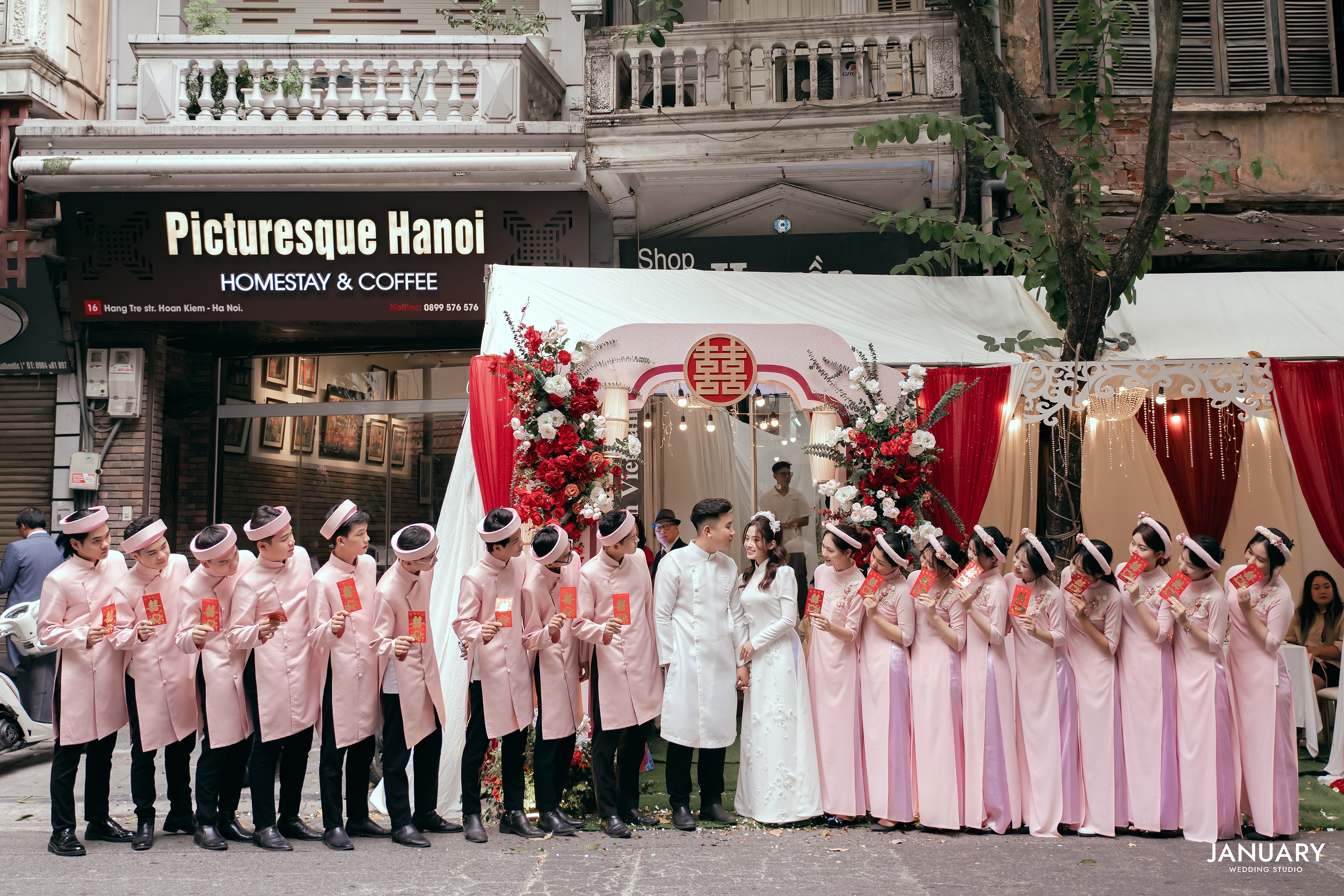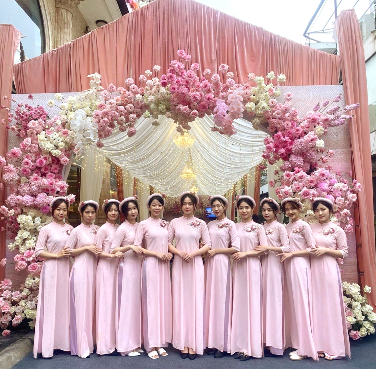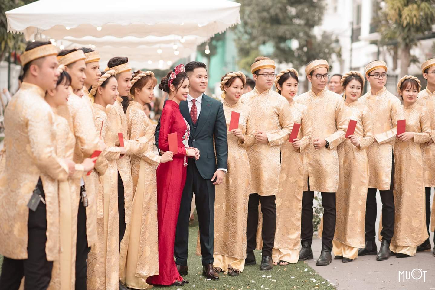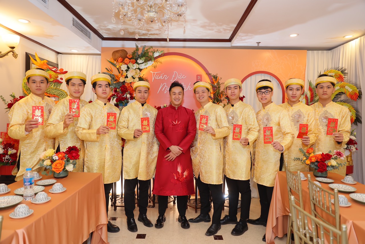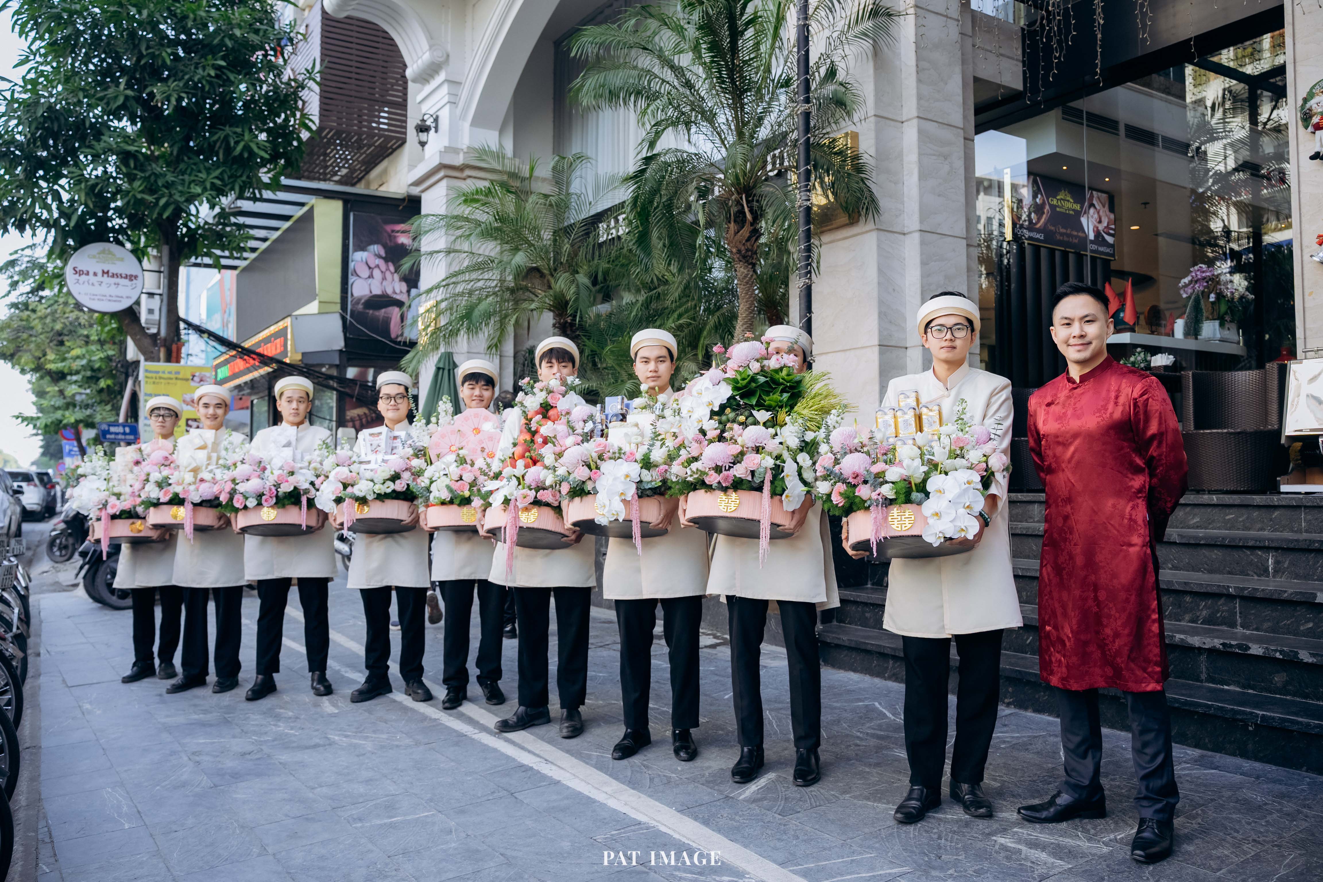 Đội hình nam - nữ bê đỡ tráp hiện đại
